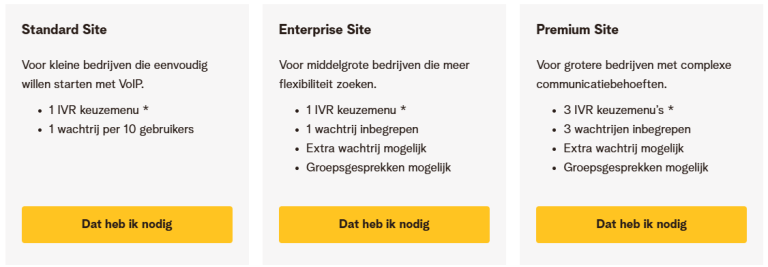 Afhankelijk van de noden en complexiteit van de callflow, zijn er 3 verschillende “plannen” bij Telenet: